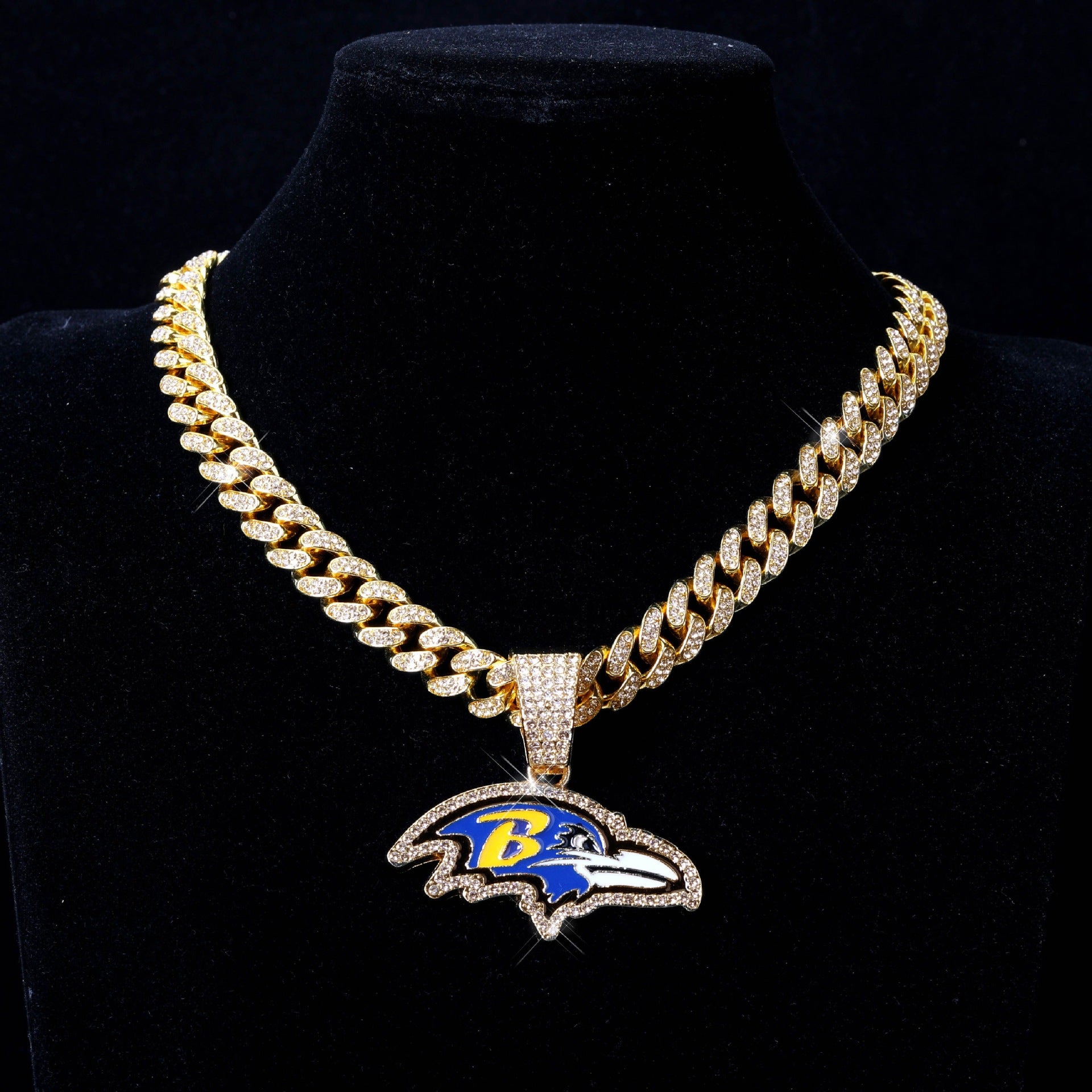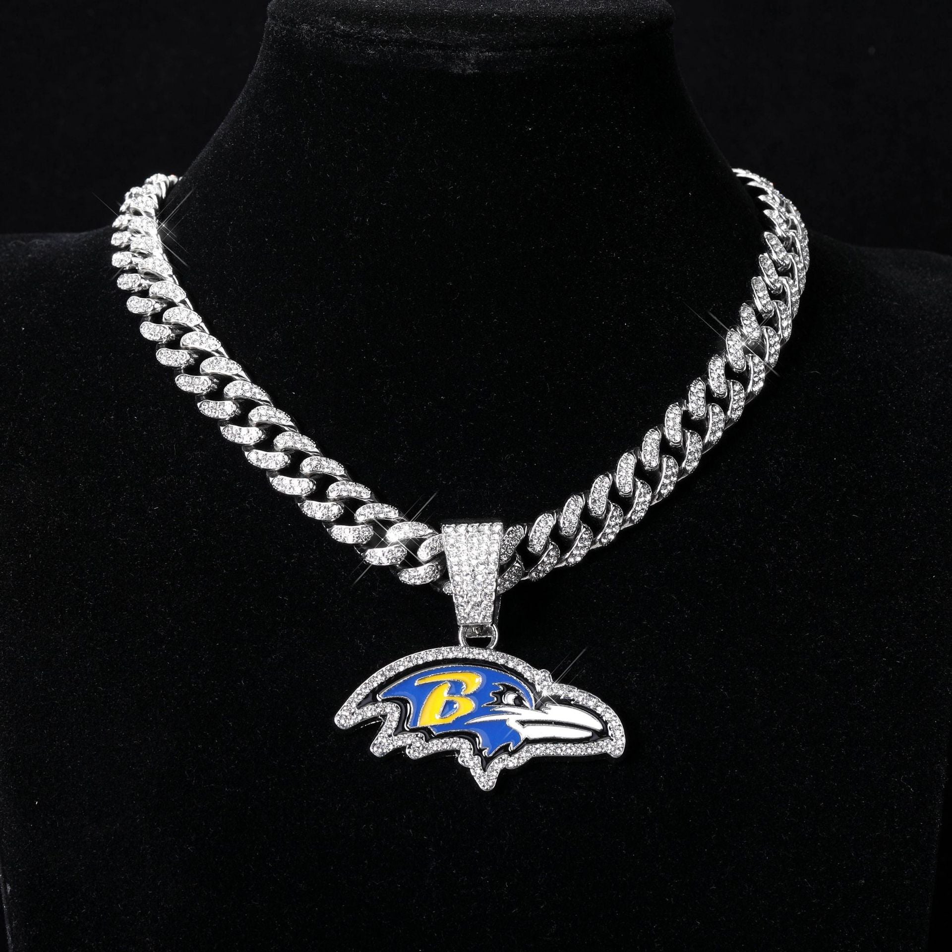 Baltimore Ravens football championship pendant with 20inch cuban chain necklace