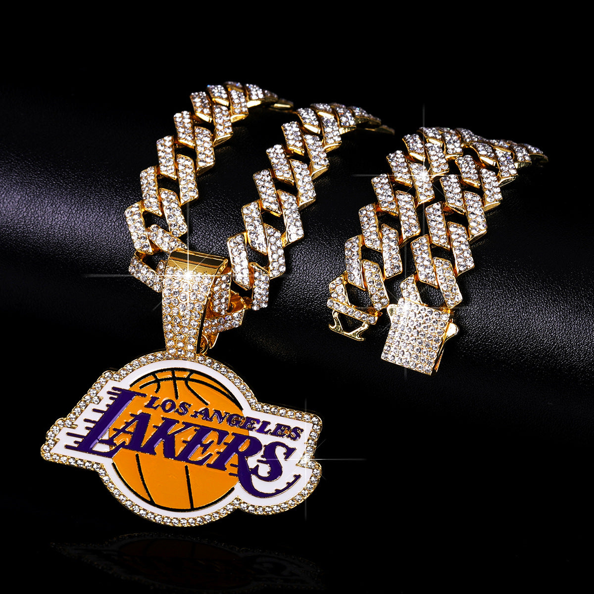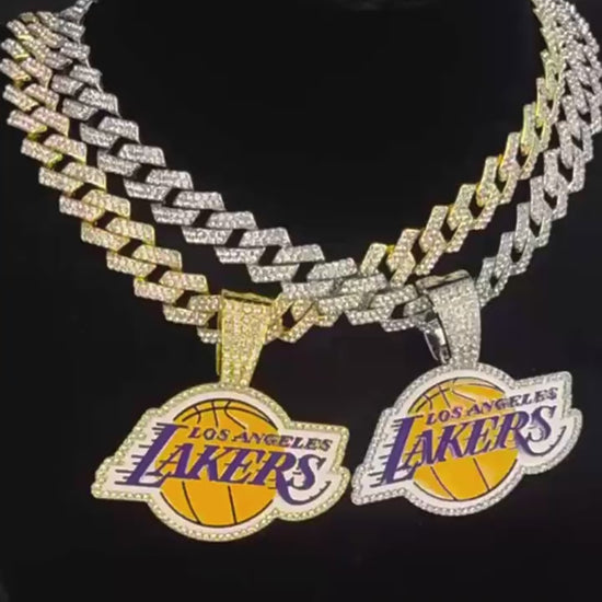 Hiphop alloy with rhinestone Lakers basketball championship pendant with cuban link chain necklaces for men